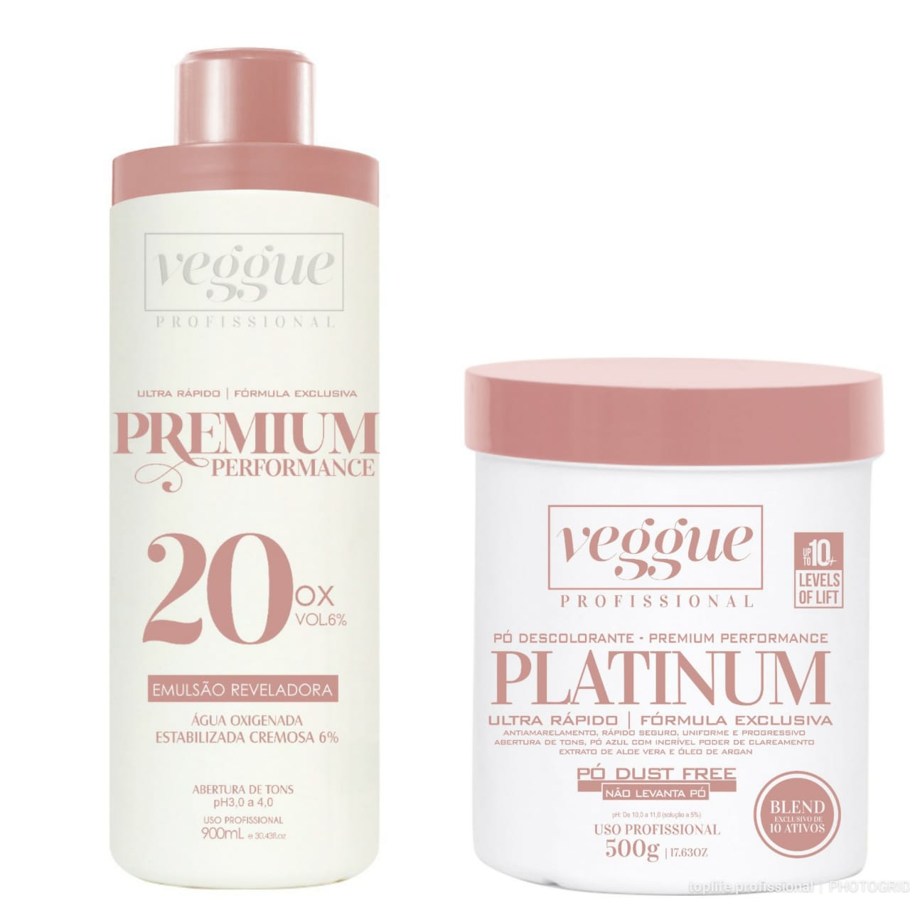 Pó descolorante Veggue Premium Platinum é um pó descolorante de alta performance que clareia até 10 tons, com ação ultra-rápida e sem danificar os fios.