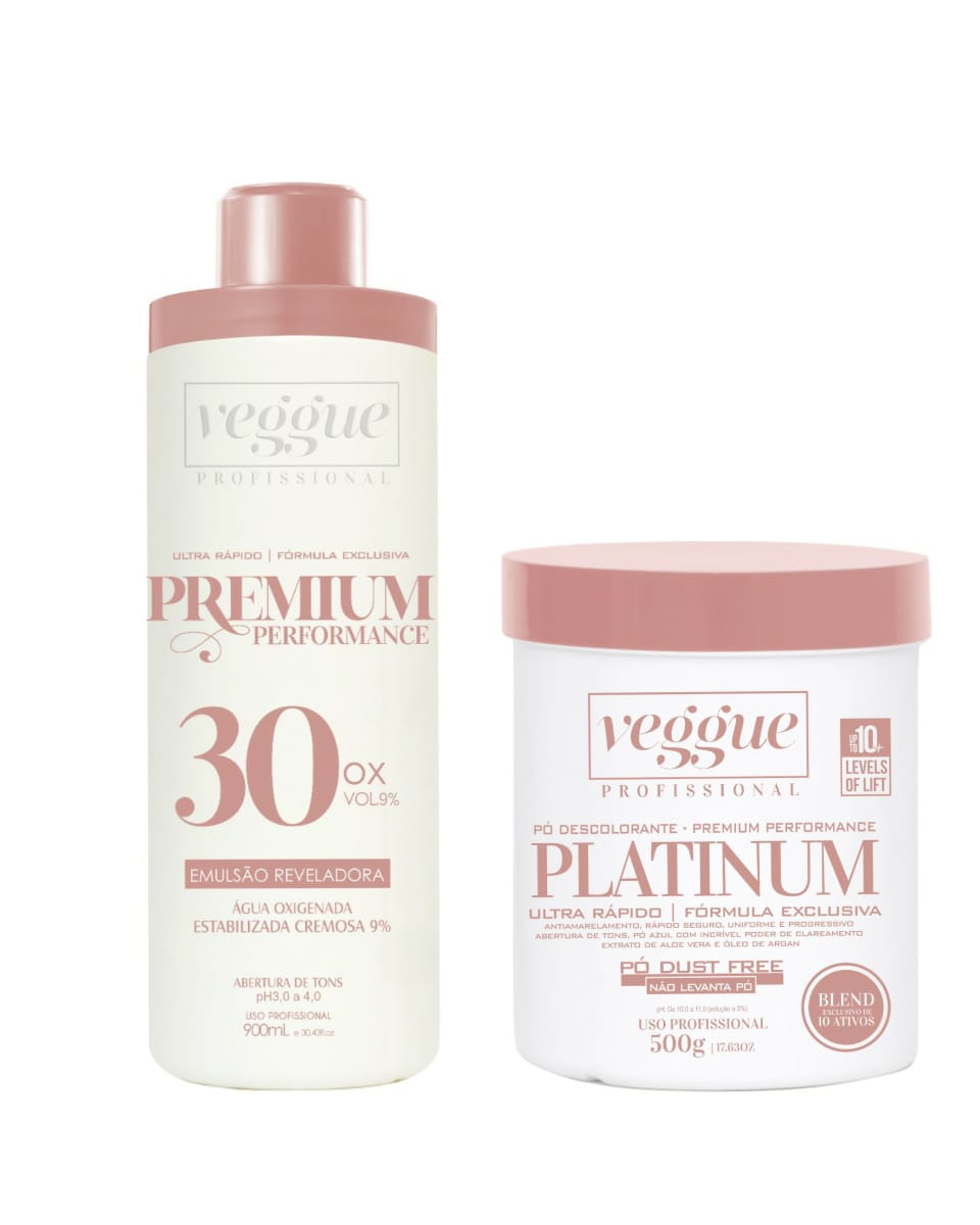 Kit Pó descolorante Premium Platinum Dust Free + Ox30 Volumes